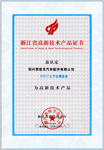 公司已先后通過(guò)IATF16949質(zhì)量管理體系認(rèn)證、ISO/14001環(huán)境管理體系認(rèn)證和OHSAS18001職業(yè)健康安全管理體系認(rèn)證。是“國(guó)家高新技術(shù)企業(yè)”“行業(yè)龍頭企業(yè)”和“全國(guó)百家優(yōu)秀汽車(chē)零部件供應(yīng)商”。